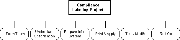 The diagram below illustrates the stages of a typical compliance labeling project. The bullets below the diagram briefly summarize each stage.