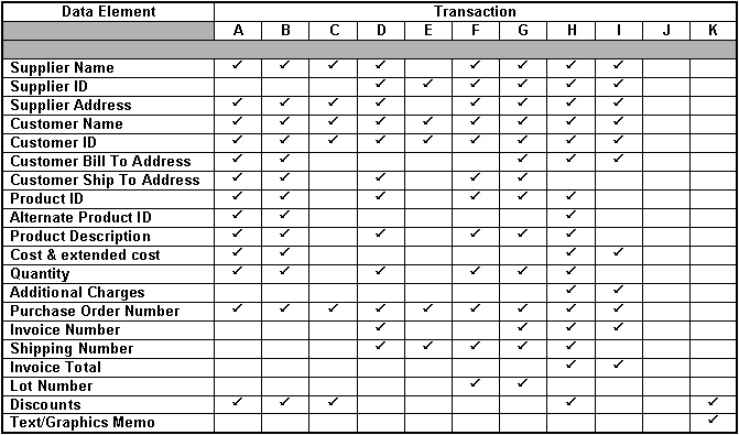 For companies using Electronic Commerce, a minimum set of transactions and data elements are required; they are as follows: