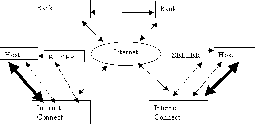 These requirements are nothing new. The U.P.C. and its cousin the EAN have been in use for years. The baseline purchasing transaction is what the banks and credit card companies refer to as “Level III” purchasing information and is used for millions of transactions each year. For those familiar with ANSI X12 standards, the IBCA transaction documents contain the same information found in the ANSI X12-based EDI Pro standards (www.insightu.org/transactions.htm). This is all the information required by the trading partners as well as the processing and authorizing banks. The Transaction Scenario, Internet Connection and Types of DocumentsNote: Many of the same capabilities presented here may be available through the use of an application service provider (ASP), a portal serving a trading community or a network service provided by a computer system or software provider. In those situations the standard IBCA files referred to in this document should be used when dealing outside the private network or intranet. If the standard files and documents are used, they provide a universal method to communicate whether dealing inside or out side the network. This is, by definition, an “open system.” At the time the order is placed, the buyer will provide all the information necessary to identify the product, the shipment destination and P-card or ACH number. The transaction is simple but the explanation can become complex because there are different categories of Internet connections and different kinds of electronic documents. As shown in the diagram below, the buyer uses the Internet to contact a seller and place the order. The seller will contact the bank to get authorization for the use of the P-card and to request payment. This all sounds simple enough, but when a company discusses this with banks, system designers, software providers and information services (IS) staff, it can become complex. The complexity stems from the wide range of capabilities that systems can provide. Therefore it is important for a non-technical person to be able to explain how he or she would like to conduct business and to be able to understand the options that a bank or a system supplier would like to provide in order to leverage operating efficiencies. The recommended starting place is to use the simple flat file (ASCII text file) that can be imported or exported by almost any system. The flat file conforms to the IBCA standards mentioned earlier (Appendix A, B, C, and D – www.insightu.org/transactions.htm). It can be imported into the host either with a manual assist or automatically. If a company is already set up to receive ANSII X12 documents, the standard flat file, because it conforms to a standard and is the same every time, can be converted. If and when the XML documents become available, the IBCA standard can be tagged to make them compatible. At the risk of oversimplification, we will deal with 3 categories of Internet connections, shown in the diagram and explained below, and 3 types of documents, also explained below. Note: The “Internet” can also be an intranet of activities on a single server Categories of Connections: