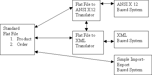 (See samples at www.insightu.org/transactions.htm). Using the U.P.C. and Product Files as the Starting PointIn order to send and receive orders and payments, some fundamentals must be in place. First of all, stock items must all be identified with U.P.C. numbers because the U.P.C. number will be used to identify the items that are being ordered, shipped and paid for. Distributor inventory master files must be matched to the manufacturer’s file using the U.P.C. number as a starting point. An important point must not be overlooked. After the initial matching, then the files must be maintained. This maintenance is called synchronization. Any time something changes in a product master file, which is controlled by the manufacturer, the item master files throughout the supply chain must be synchronized with the manufacturer’s file. Therefore it is important to have two capabilities, one for start-up matching and the other for ongoing synchronization. It is a relatively straightforward task to add the U.P.C. number to an inventory record. It is much more complex to keep descriptions, prices and other elements of information synchronized. But since the U.P.C. Matching File is a simple ASCII text file (see Appendix A and www.insightu.org/transactions.htm) the matching file is a good place to start. Whether a system is sophisticated and uses ANSI X12 EDI, or not, the files containing the necessary elements of information in the necessary format can be exported from the database. As mentioned earlier, everyone in the supply chain must conform to the agreed to IBCA document standard. The second, more comprehensive Product Information Export File is used to maintain databases. The information contained in the Product Information Export File is based on the UCC IC ANSI X 12 832. This “flat file” can simply be exported from a database or imported without sophisticated EDI mapping. Furthermore, if a company has invested in EDI, the standard document can be transcribed by their own system software or by various third parties. These individual documents and/or files must be transmitted from the manufacturer to the rest of the supply chain. Since both the sending and receiving companies represent a diverse group who are at all levels of technical capability, the communication media must serve them all. When the 2 types of files are available, a company can: 1) place U.P.C. information on a CD or e-mail it or put the file at their web site so companies can simply import it to their data base; 2) use the ANSI X 12, 832 to send the file over a VAN or go point-to-point. Manufacturers at the most sophisticated levels must be able to provide the least sophisticated transmission media. Then distributors, regardless of technical level, can begin to use the technology. Concern has been voiced that this is “yet another standard”. It is not. A review of the transactions described in this document reveals that they are all simple subsets that are directly related to the more complex ANSI X 12 transactions and the field definitions directly relate to the XML tags that are under development. As the diagram indicates, the IBCA Standard Flat File or Document is the universal record that any translator can read and import, export or convert to X12 or XML. This allows software providers, third party VANS or Internet portals to handle the files or translation. Any of the companies can be tested to ensure that what they take in and what they put out does work. Once companies are capable of importing and exporting the standard files, they will be able to test that the fields required by their software do match and then they can begin to communicate using the simple flat files where appropriate and the complementary ANSI X 12 or XML documents when necessary.